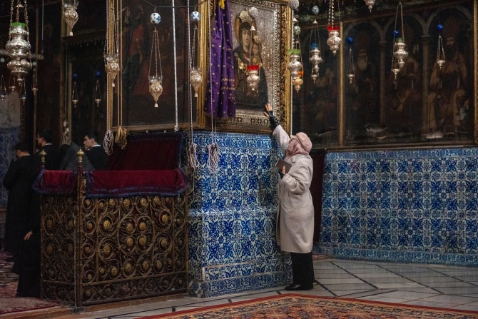 According to the Greek Orthodox tradition, the Holy Fire is a miracle that occurs every year, the day preceding Pascha, dating back to the fourth century. Every year, at noon, the patriarch of Jerusalem stands alone and in the darkness inside the tomb of Christ, reciting a specific prayer, until the Holy Fire descends and spontaneously lights a lamp of olive oil held by the patriarch. Before entering, he is inspected by Israeli authorities to prove that he does not carry the technical means to light the fire.