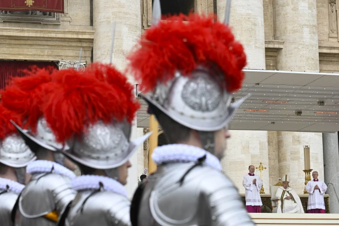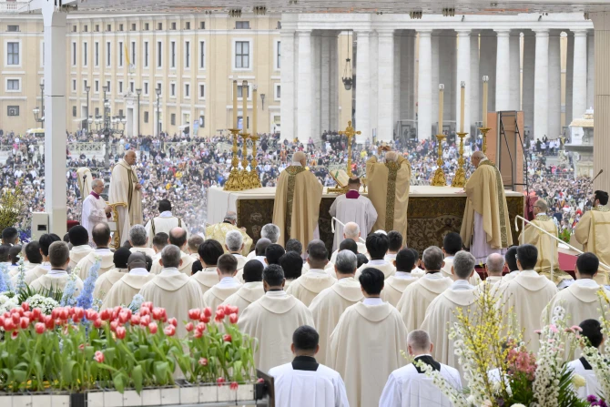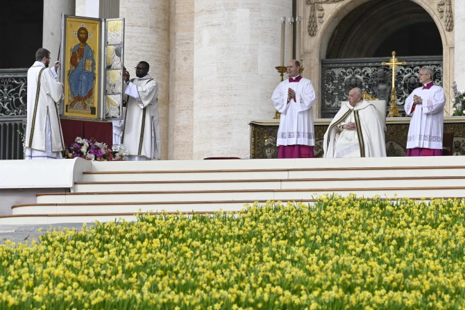 Three hundred priests, 18 bishops, and 34 cardinals concelebrated the Easter Sunday Mass on March 31. Cardinal Giovanni Battista Re celebrated at the altar due to Francis’ difficulty walking and standing.
