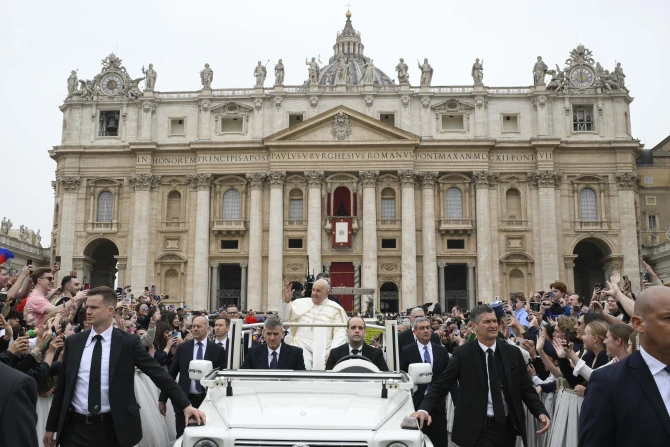 The pope also participated in the “Resurrexit,” an ancient rite honoring an icon of the Holy Savior. At the conclusion of the liturgy, Pope Francis rode through St. Peter’s Square on the popemobile greeting enthusiastic pilgrims who waved flags and cheered.