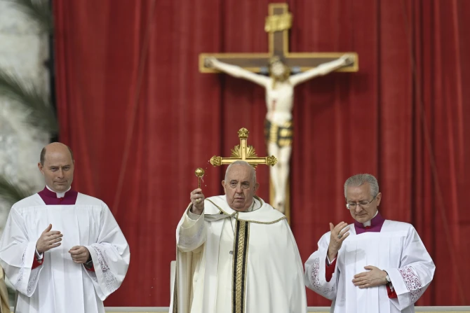 Speaking from the central balcony of St. Peter’s Basilica in his urbi et orbi blessing, Pope Francis said that “today throughout the world there resounds the message proclaimed 2,000 years ago from Jerusalem: ‘Jesus of Nazareth, who was crucified, has been raised!’”