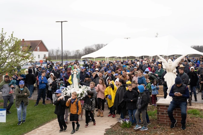 “Participants walk down everyday streets and trails through the Green Bay area, led by a carried statue of the Blessed Virgin Mary,” he explained. “They pray the rosary, sing hymns, and silently reflect on the intentions they are walking for. It’s always a beautiful display of faith for the world to see.”