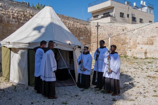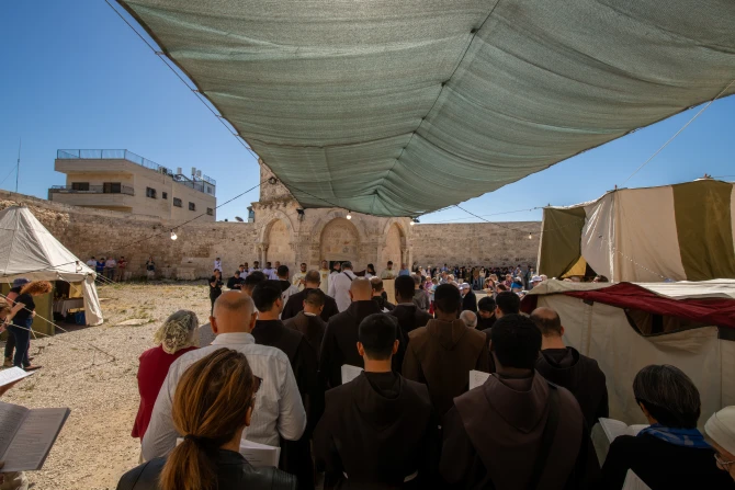 “Every year we come for the Ascension,” he told CNA. “We pray during the bus journey, we stop here for the vigil celebration, then we celebrate the Mass at Dominus Flevit, and we spend some hours praying in the Holy Sepulcher.”