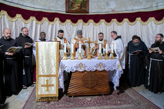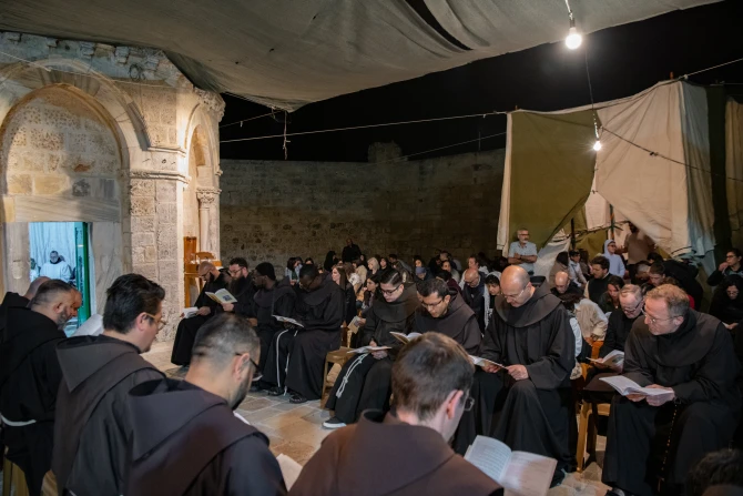 The Latin parish of Jerusalem organized a communal recitation of vespers, with a large group of faithful in attendance.