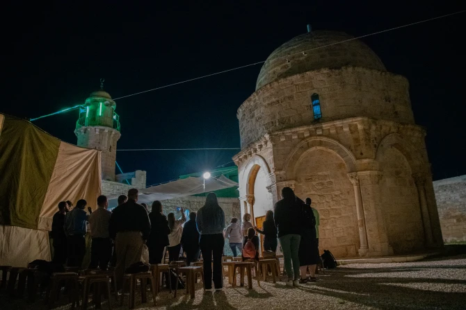 While waiting her turn to enter the Chapel of the Ascension in the middle of the night, Rawya Graisy from Nazareth shared with CNA her joy of being in this place for the first time. “I had heard about this church and wanted to see it,” she said. “We are here to pray to God. We pray to God to stop the war, to help all the people suffering because of it, and to grant us peace.”
