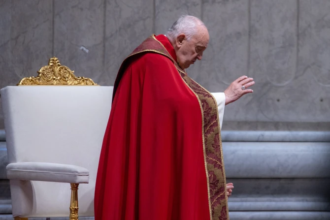 Pope Francis presided over the Mass the day after traveling to the northern Italian city of Verona. The 87-year-old pope was not the main celebrant but gave a shortened homily from a white chair at the front of the congregation to the right of the altar.