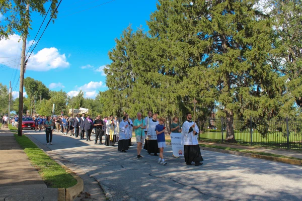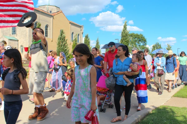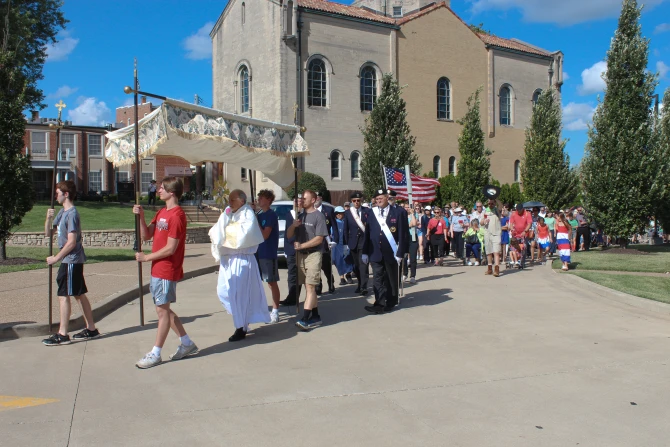 Sunday’s festivities began at the Cathedral Basilica of St. Louis, with Sunday Mass celebrated by Archbishop Mitchell Rozanski. Following the Mass, hundreds of people gathered to accompany the Eucharistic procession on a roughly five-mile trek to St. Stephen Protomartyr Church.