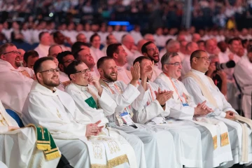 More than 50,000 Catholics from all 50 states who speak more than 40 languages are present at the congress, which features keynote speeches and Eucharistic adoration in the Indianapolis Colts’ Lucas Oil Stadium.