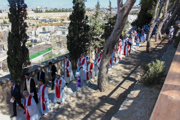 On Sept. 14, Monsignor William Shomali, general vicar of the Latin Patriarchate of Jerusalem, blessed the Pilgrims of Hope Way in the presence of many priests, religious people, and lay faithful — which included Christians, Muslims, and Jews.