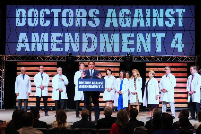 The Florida governor, who has been actively campaigning against both issues leading up to Nov. 5, sent cease-and-desist letters to TV stations airing pro-Amendment 4 ads, prompting a First Amendment lawsuit from Floridians Protecting Freedom.