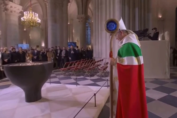 The archbishop of Paris, Laurent Ulrich, on Dec. 8, the solemnity of the Immaculate Conception, celebrated the first Mass during which the altar of the restored cathedral was consecrated following the fire that ravaged the church in April 2019.