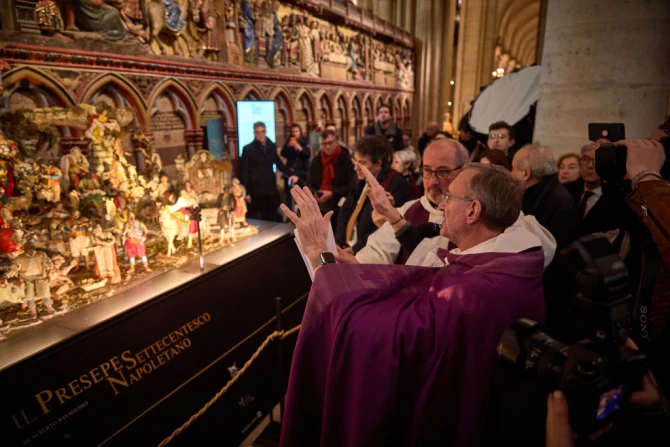 The rector of Notre Dame Cathedral in Paris has blessed the Nativity scene at the historic French landmark church ahead of the first Christmas celebrations since its restoration after a devastating 2019 fire.