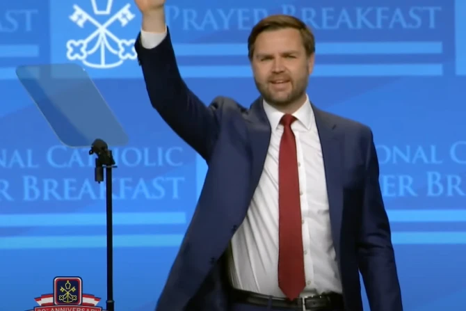 U.S. Vice President JD Vance led attendees at the 2025 National Catholic Prayer Breakfast in a prayer for Pope Francis’ health after speaking about his own conversion to the Catholic faith and the goals of President Donald Trump’s administration.