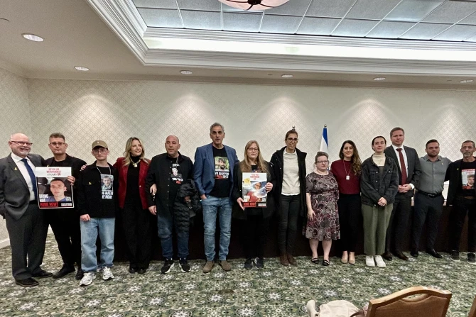 Organized by the Israeli Ministry of Foreign Affairs and the Israeli Defense Forces, the panel included family members of Oct. 7, 2023, hostages Matan Angrest, 24, Manny Godard, 73, Guy Ilouz, 26, Tamir Nimarodi, 20, Evyatar David, 24, Idan Shvtivi, 28, Rom Brasvlavski, 21, and Omri Miran, 47.