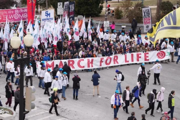 The front of the march was led by several school groups, many dressed in their uniforms, all chanting various slogans. Among the signs: “We are the pro-life generation and we will abolish abortion” and “We love babies, yes, we do!”