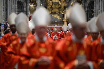 Cardinal Pietro Parolin, secretary of state during Francis’ pontificate, intoned the “Veni, Creator Spiritus” and then, as celebrant of the rite, prayed: “O Father, who guides and guards your Church, give to your servants the Spirit of intelligence, of truth, of peace, so that they may strive to know your will, and serve you with total dedication. Through Christ Our Lord. Amen.”