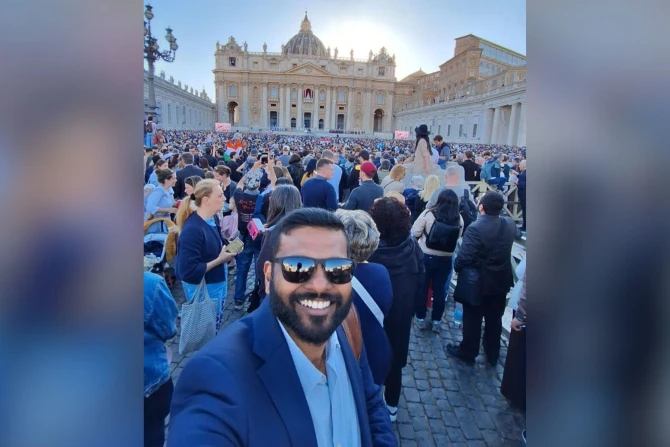 After news of “white smoke” began to spread across Rome, Singaporean theology student Dominic Nalpon managed to arrive at the center of St. Peter’s Square in time to hear the awaited “Habemus papam!” (“We have a pope!”) announcement and see the new Holy Father.