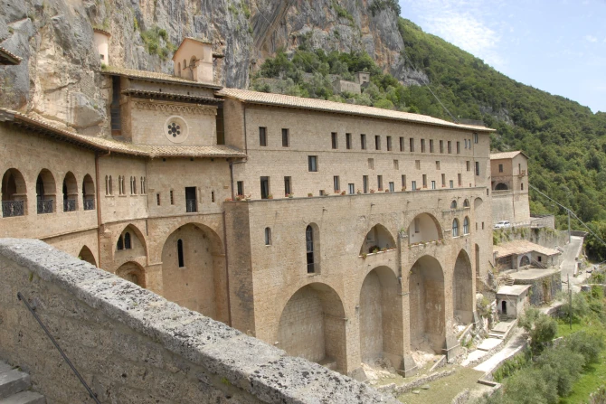 Nestled among the majestic cliffs of the Simbruini mountains in Subiaco, a town about an hour from Rome in the heart of the Aniene River valley, stands the Monastery of St. Benedict, also known as the “Sacro Speco” (“Sacred Cave”). It is from this place that the famous rule of religious life was born and would spread through the centuries, still followed by thousands of monks and nuns around the world today.