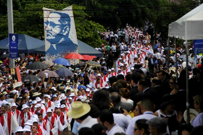 At the beginning of the ceremony, the current archbishop of San Salvador, Archbishop Jose Luis Escobar Alas, read a message asking Pope Francis "to deign to enroll in the number of the blesseds this venerable servant of God Óscar Arnulfo Romero Galdámez."