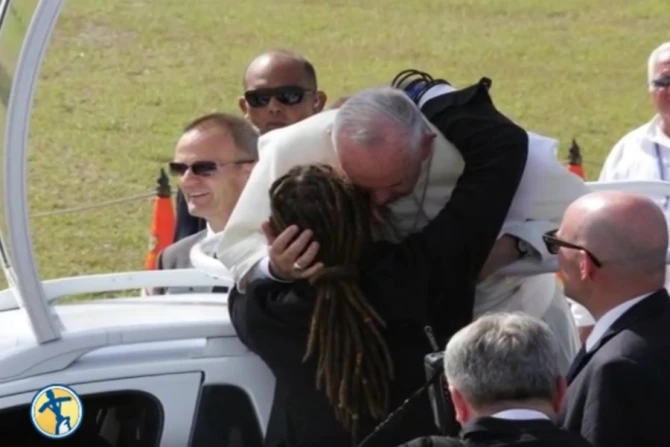 "Ever since I found out about the arrival of Pope Francis I wanted to have the opportunity of having a zucchetto in order to follow in this tradition of being able to exchange it with the Pope. Thank God a friend could give me one, and since the Pope was close, I could exchange it and also give him a hug," he told CNA.