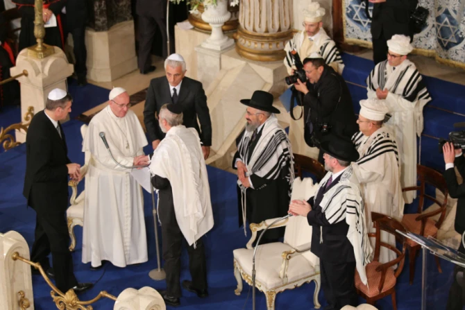 Speaking Sunday at the major synagogue of Rome, Pope Francis called on Jews and Christians to counter the conflict, war, violence and injustice that open deep wounds in humanity.