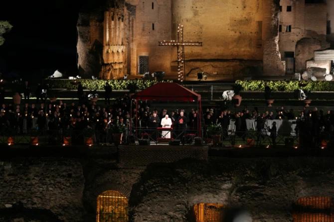 The Pope delivered his prayer after the recitation of the Via Crucis, which included reflections from Cardinal Gualtiero Bassetti of Perugia-Citta della Pieve.