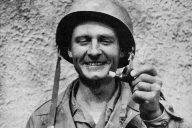 Carter spoke of the number of times the Korean War-era priest survived battles and his runs onto the battlefield to rescue the wounded. The priest's pipe was shot out of his mouth several times.