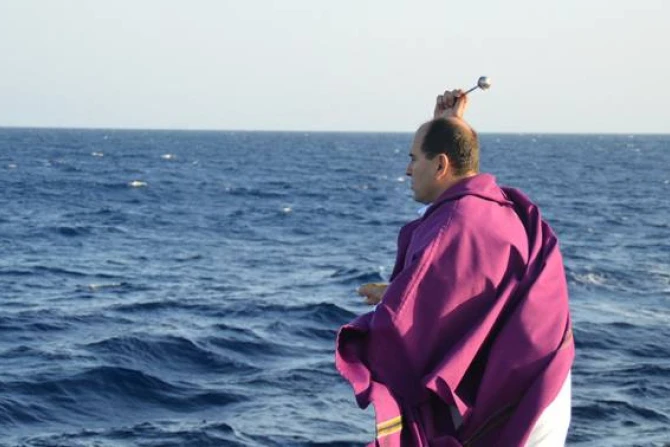 Fr. Gaton told CNA that his work as a chaplain has been difficult. "You are faced with death, with suffering, with violence. If you're far from home and the priest introduces himself as another shipmate for the believers and non-believers with whom they can unburden themselves, they can talk and share like they can't do with the naval officers."