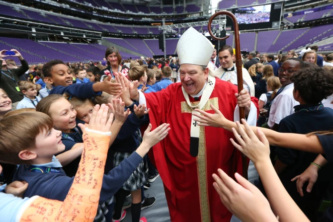 Thousands of young Catholic students gathered for Mass, music, and a winter clothing drive on Wednesday morning in a stadium in Minneapolis, Minnesota.