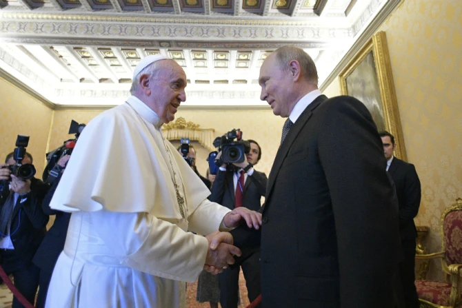 Russian President Vladimir Putin met with Pope Francis at the Vatican July 4 for a 55-minute private discussion.
