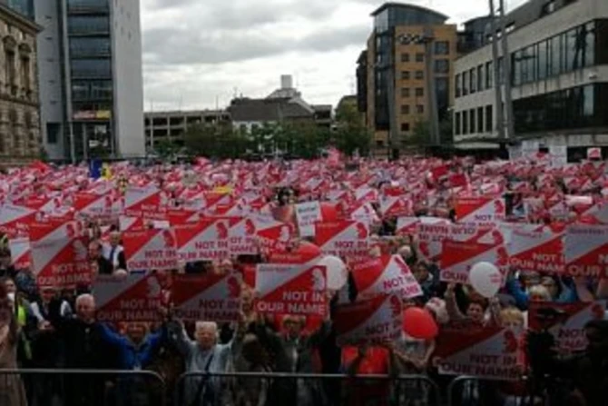 Tens of thousands of people took to the streets of Belfast on Saturday to protest against the impending legalization of abortion in Northern Ireland. Pro-life advocates told CNA that they fear the proposed changes in the province could be used to legalize abortion on demand throughout the entirety of the United Kingdom.