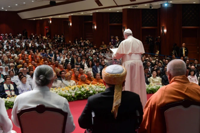 In a meeting with leaders of major religions in Thailand Friday, Pope Francis stressed the importance of upholding human dignity and religious freedom.