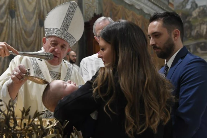 "Just as Jesus went to receive baptism, you bring your children," Francis said. "The power of the Holy Spirit comes to defend them for the rest of their lives."