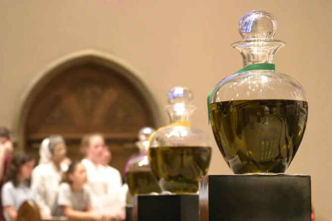 In his Friday email to priests, Rozanski noted that the diocesan Chrism Mass would be postponed, and told priests that "Should you run out of either the Oil of the Sick or Oil of the Catechumen, you may bless these oils to replenish your stock."