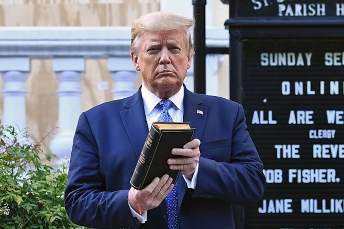 The president then walked across a square that moments before had been filled with protestors forcibly removed by police units, and visited a historic Episcopalian church that had been on fire the night before.