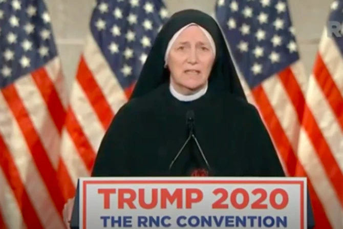 Sr. Deirdre "Dede" Byrne, POSC, was among the speakers at the 2020 Republican National Convention. Now a Catholic religious sister, Byrne previously served as a surgeon, retired army officer, and missionary. The full text of her speech, delivered August 26, is below: