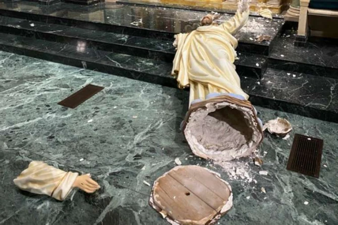 According to the diocese, someone entered the sanctuary of St. Patrick’s Cathedral Tuesday morning and destroyed a century-old statue of the Sacred Heart of Jesus. The statue had been placed behind the main altar of the church, which was open for prayer at the time of the vandalism.
