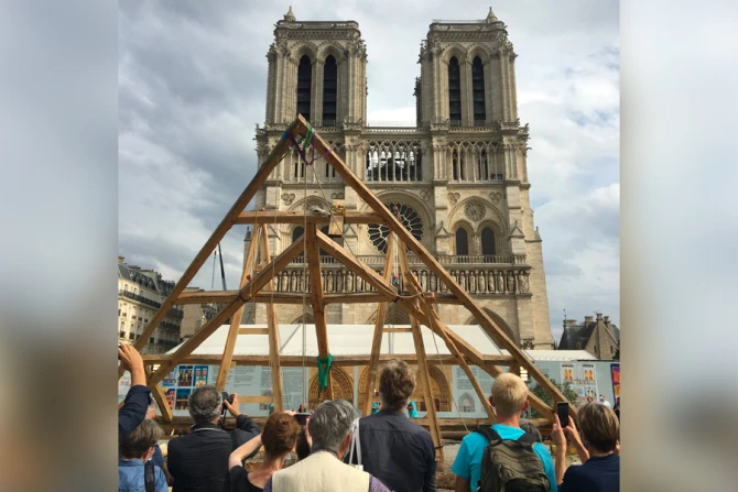 Last year, the French Senate passed a bill mandating that Notre-Dame be rebuilt as it was before the fire, with lumber and medieval carpentry techniques, which were highlighted in a public demonstration Saturday in the cathedral's square.