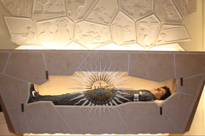 The teen's body will be available for veneration in a glass tomb until Oct. 17, during a celebration of Acutis' life in Assisi.