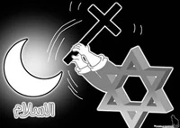 ![]() September 22: The Star of David, representing the Jews, is using the Cross to slam the Crescent of "Islam." |