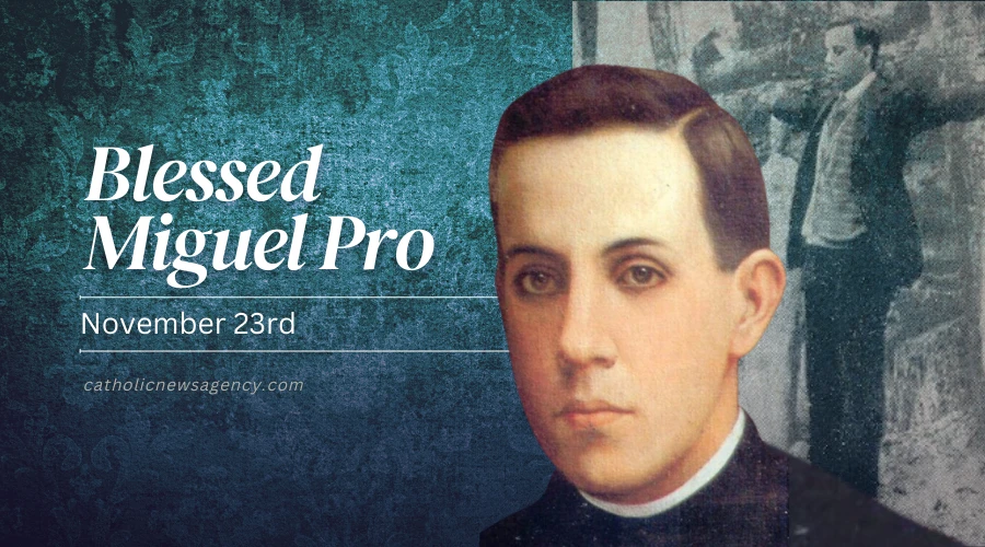 Born in Guadalupe on January 13, 1891, Miguel Pro Juarez was one of 11 children. Miguel was, from an early age, intensely spiritual and equally intense in his mischievousness, frequently exasperating his family with his humor and practical jokes. As a child he had a daring precociousness that sometimes went too far, tossing him into near death accidents and illnesses. Miguel was particularly close to his older sister, and after she entered a cloistered convent he began to discern his own vocation, leading him to enter the Jesuit novitiate in El Llano, Michoacan at the age of 20. He studied in Mexico until 1914 when a tidal wave of governmental anti-Catholicism crashed down upon Mexico, forcing the order to flee to Los Gates, California. He then taught in Nicaragua from 1919 until 1922.