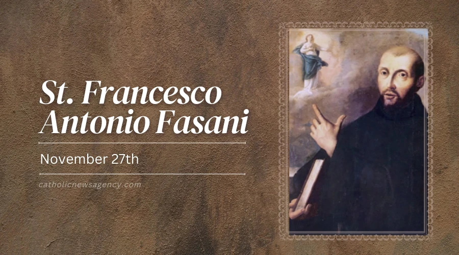 St. Francesco (Francis) Antonio Fasani was born as Giovanneillo in Lucera, Italy in 1681, the son of Giuseppe Fasani and Isabella Della Monaca. He entered the Conventual Franciscans in 1695 and took the names of St. Francis and St. Anthony. He spent much of his time studying, and was ordained a priest 10 years after entering the order. He then taught philosophy to younger friars, served as the guardian of his friary, and later became provincial of his order. When his term of office as provincial ended, Francesco became a novice-master, and eventually pastor in his hometown. In all his various ministries, he was loving, devout and penitential. He was a sought-after confessor and preacher. One witness at the canonical hearings regarding Francesco’s holiness testified, "In his preaching he spoke in a familiar way, filled as he was with the love of God and neighbor; fired by the Spirit, he made use of the words and deed of Holy Scripture, stirring his listeners and moving them to do penance." Francesco showed himself a loyal friend of the poor, never hesitating to seek from benefactors what was needed. He was also a mystic, known for his deep prayer life and supernatural gifts, and was known to levitate while praying. The people of Lucera were known to compare him with St. Francis of Assisi, from whom he derived his name. He died in 1742 and was canonized in 1986.