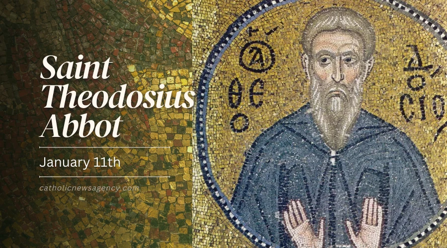 Born to a pious family in 423 A.D., Theodosius began his studies at an early age, and became a lector while still an adolescent. The example of Abraham led him to leave home in order to properly follow God. He met Saint Simeon Stylites in Antioch, and Simeon recognized him as a holy man and leader, and invited Theodosius onto his pillar for prayer, blessing, and advice. He then traveled to Jerusalem where legend says he worked with Saint Longinus, who would have been nearly 500 years old at the time. After a time, he was given charge of a small church near Bethlehem, however his time there did not last long.