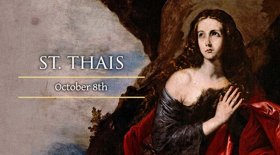Saint Thais was a penitent woman of Egypt in the fourth century. While little is known of her life, she was a sinful woman converted by a monk, perhaps Paphnutius of Thebes, who then lived three years in a narrow cell in most profound penitence.