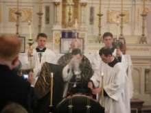 The twin steeples of Sacred Heart Catholic Church tower over the green summer cornfields just outside of Paxico, Kansas. Read more
