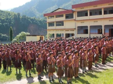 Students in morning assembly prayer in Catholic school at Seppa in the northeastern Indian state of Arunachal Pradesh.